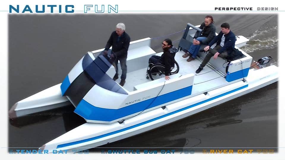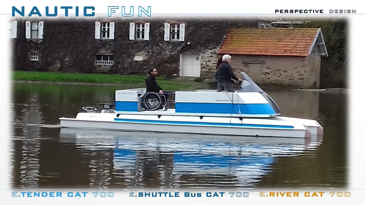 Le « Nautic Fun 700 » est un tout nouveau bateau électrique qui a été conçu pour répondre à différentes demandes. Il est notamment homologué PMR, c’est a dire qu’il peut accueillir et être piloter par des personnes à mobilité réduite. Ce bateau électrique a été pensé, dessiné et conçu par deux personnes : Philippe et Dominique.
