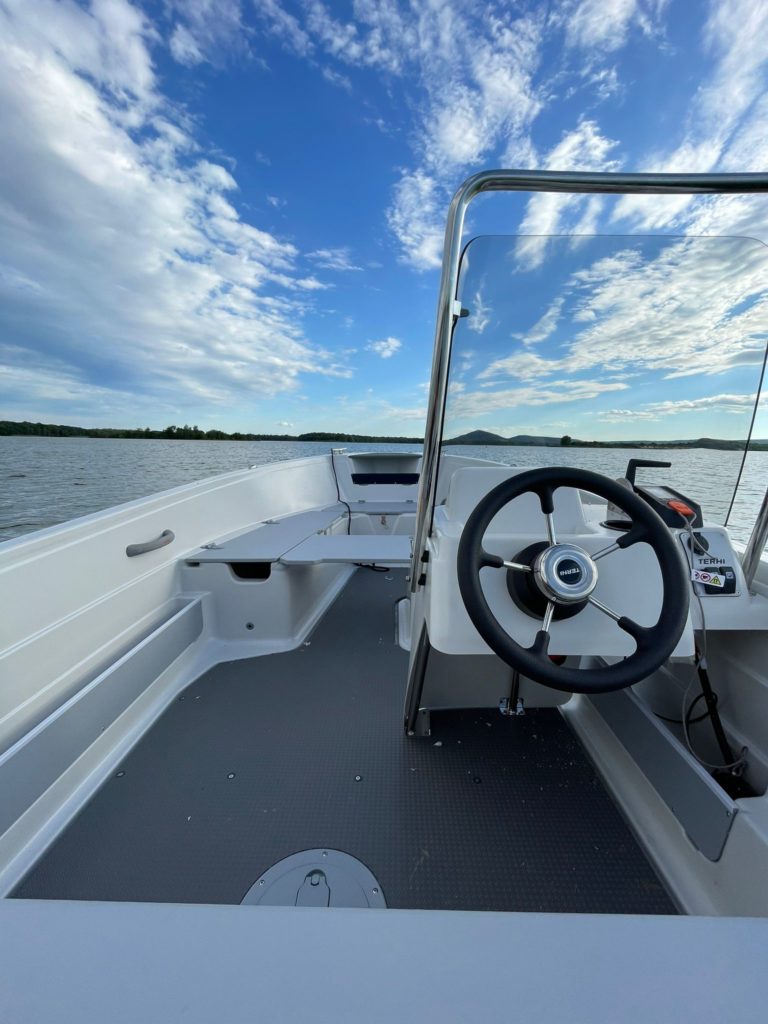 Le Terhi 450CC est un bateau avec une console (un volant) tout à fait adapté en utilisation « électrique ». Autant idéal pour une utilisation professionnelle que plaisance.